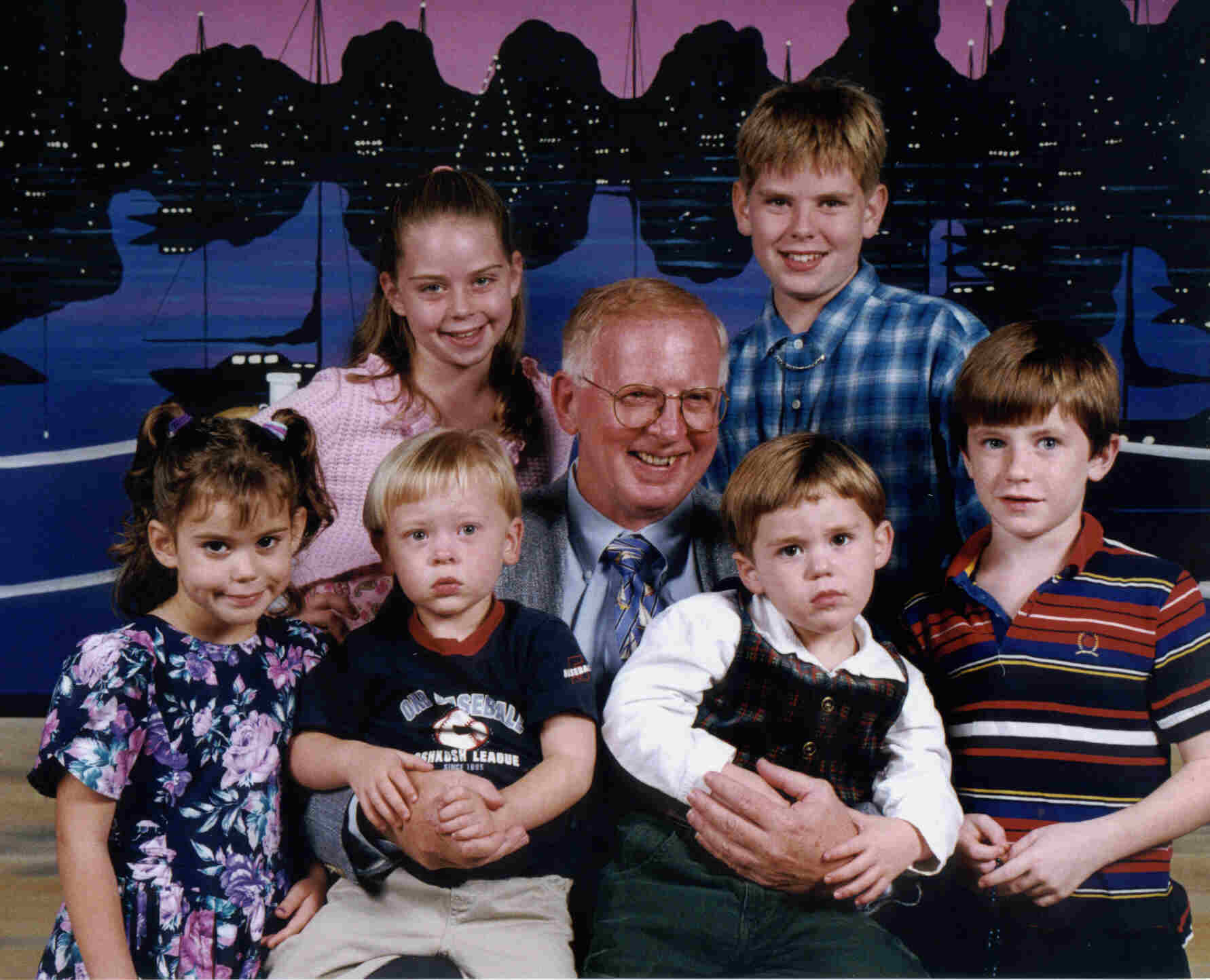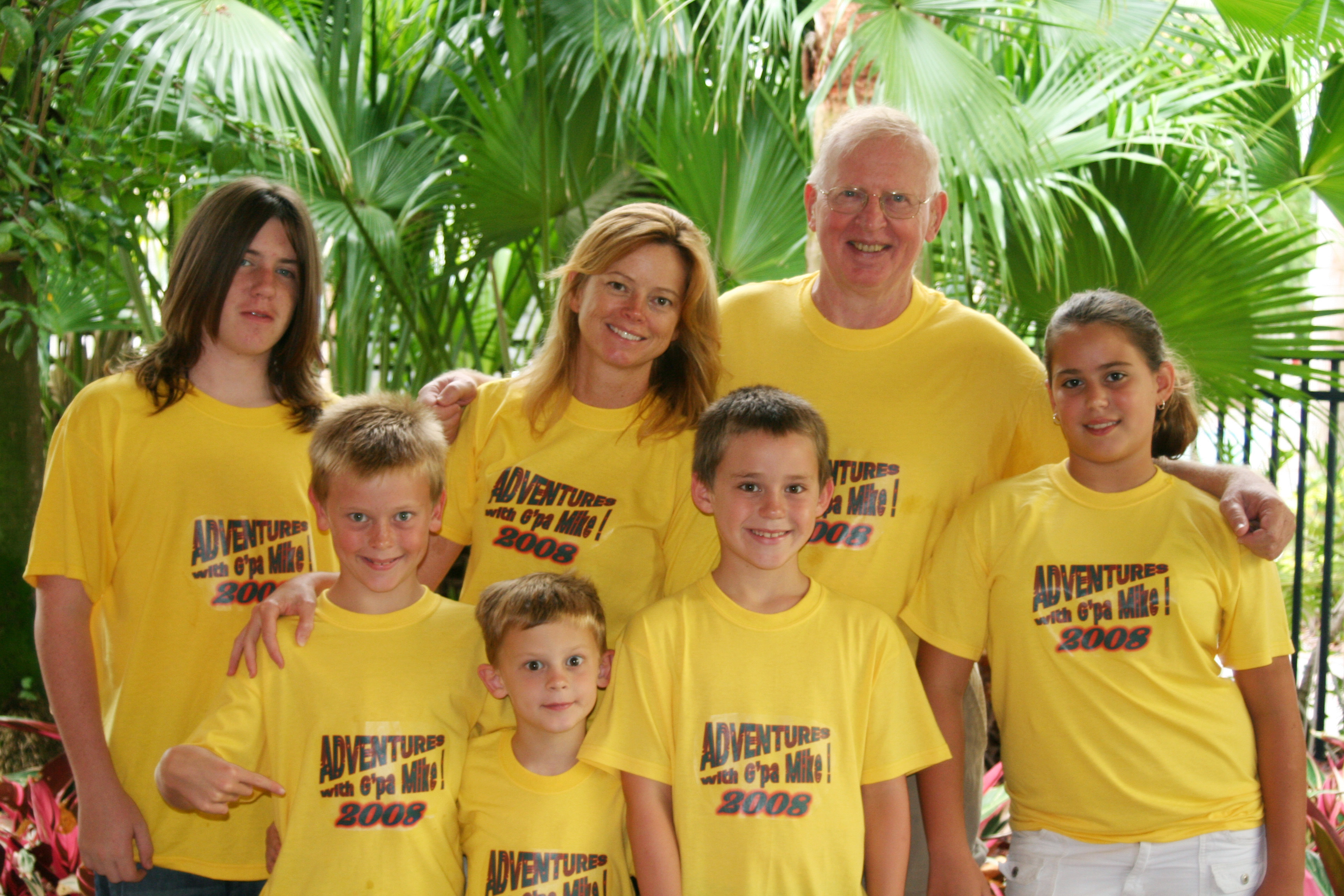 2001The Adventures came into being on our family cruise in 2001. Several people remarked that this picture looked like the high point of my life, and being surrounded by the best grandchildren in the world sure ranks right up there with Life's Greatest Moments! So plans began for Adventures with G'pa Mike the following summer. |